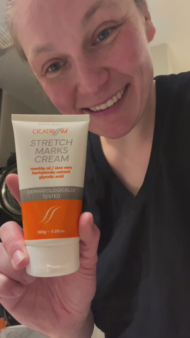 CICATRISSIM is a unique stretch marks cream developed with 4 medicinal plants extracts. Rose hip oil, Aloe Vera, Glycolic Acid, Barbatimão Extract (Stryphnodendron adstringens extract)